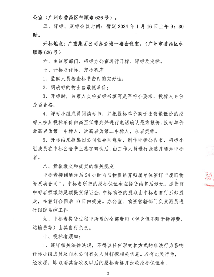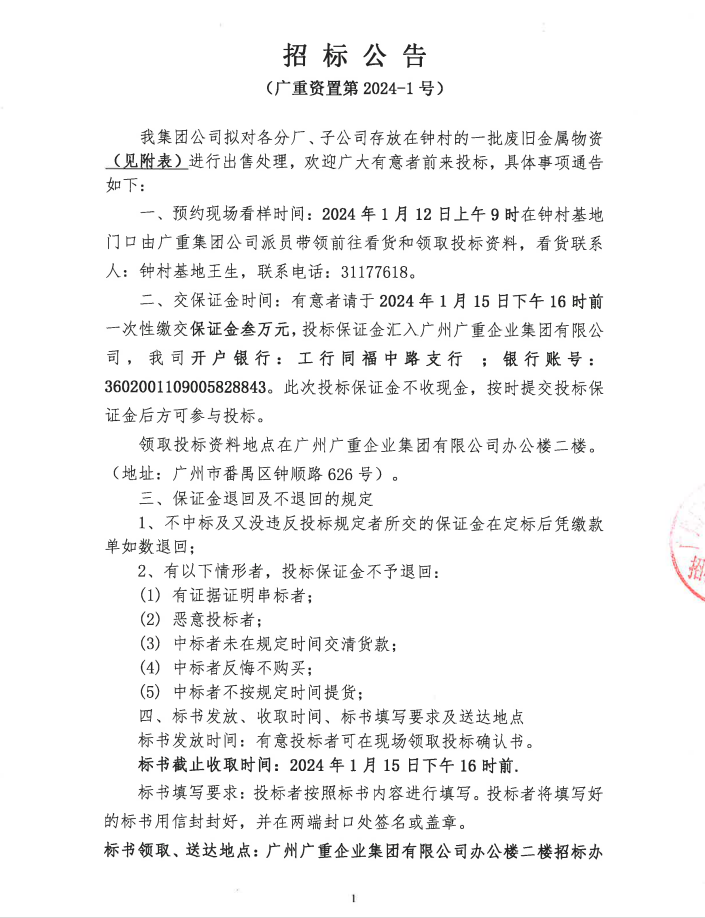 钟村废碳钢A、割渣类等物资处置(乐鱼网页版页面登录资置2024-1号)
