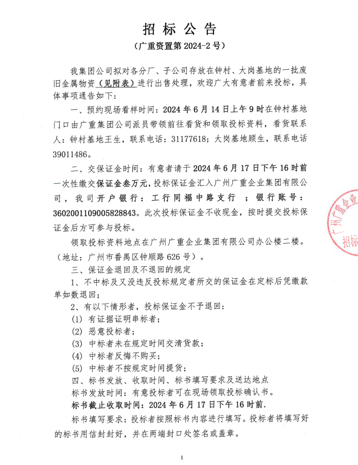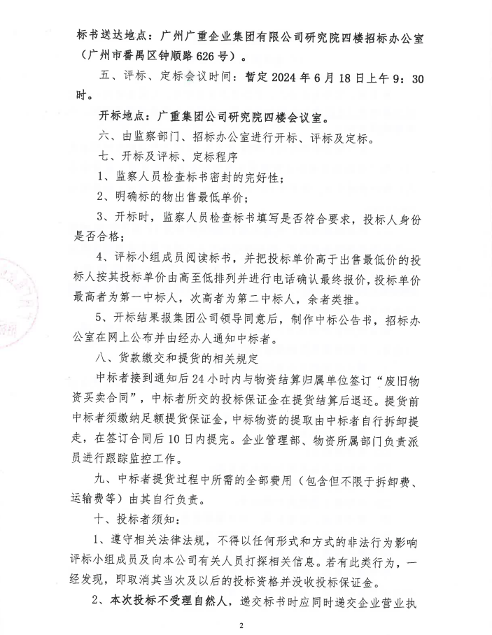 废旧金属物资处置(乐鱼网页版页面登录资置2024-2号)