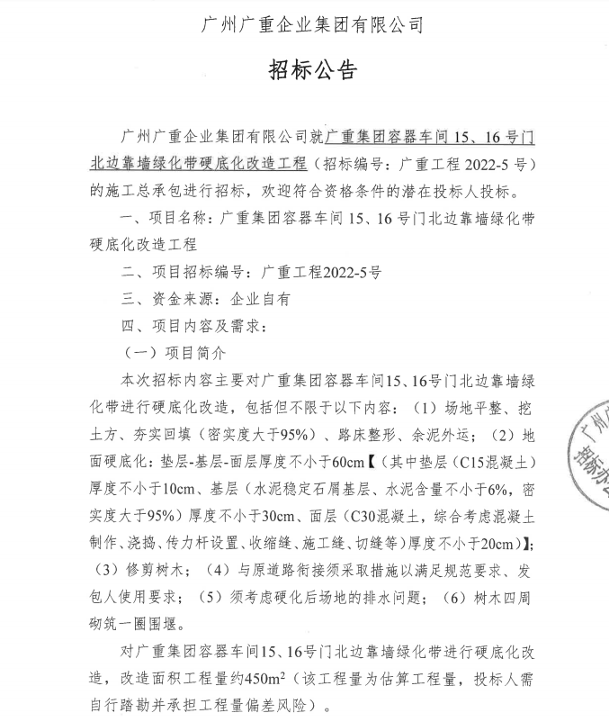 乐鱼网页版页面登录集团容器车间15、16号门北边靠墙绿化带硬底化改造工程招标公告