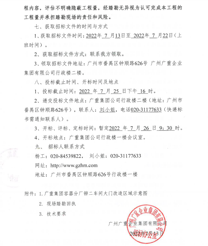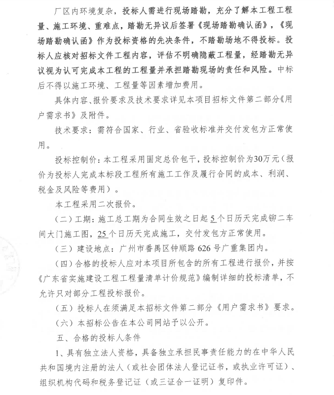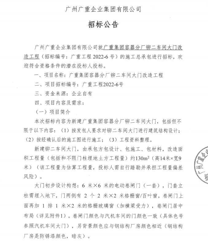 乐鱼网页版页面登录集团容器分厂铆二车间大门改造工程招标公告