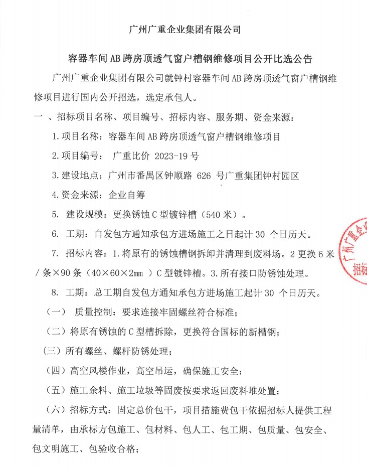 乐鱼网页版页面登录集团容器车间AB跨房顶透气窗户槽钢维修项目