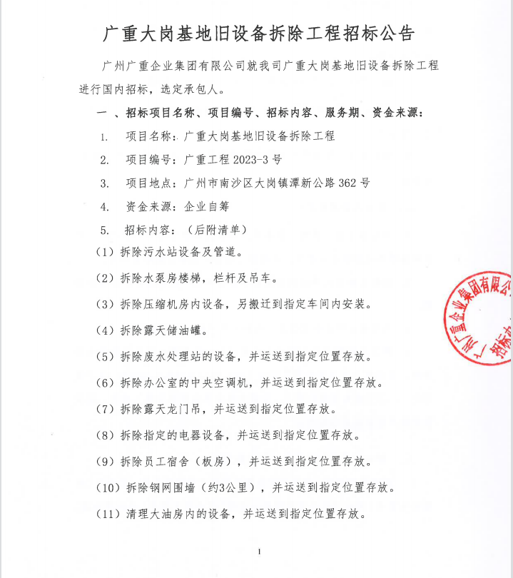 乐鱼网页版页面登录大岗基地旧设备拆除工程招标公告